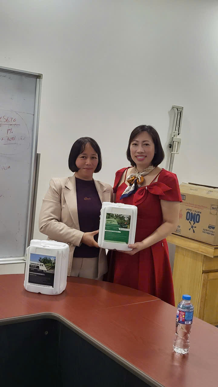 After the discussion, Ms. Vo Thi Thanh Nhan presented the gift 02 SungWon DX biological product can, one type of promotion for trees and one type of environmental treatment for Ms. Nguyen Thu Huyen. The three parties also agreed to establish a Memorandum of Understanding (MOU) This cooperation and the terms of cooperation will be discussed, unite to develop together.