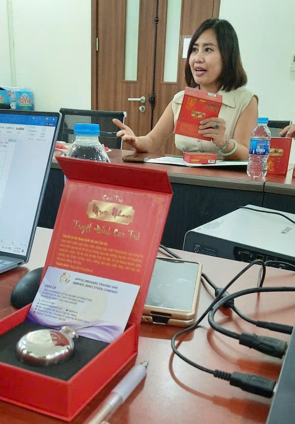 Ms. Le Thi Hoa introduces Muc Nhan High Tea products and teas of Co Apple Garden Agricultural Service and Trading Joint Stock Company