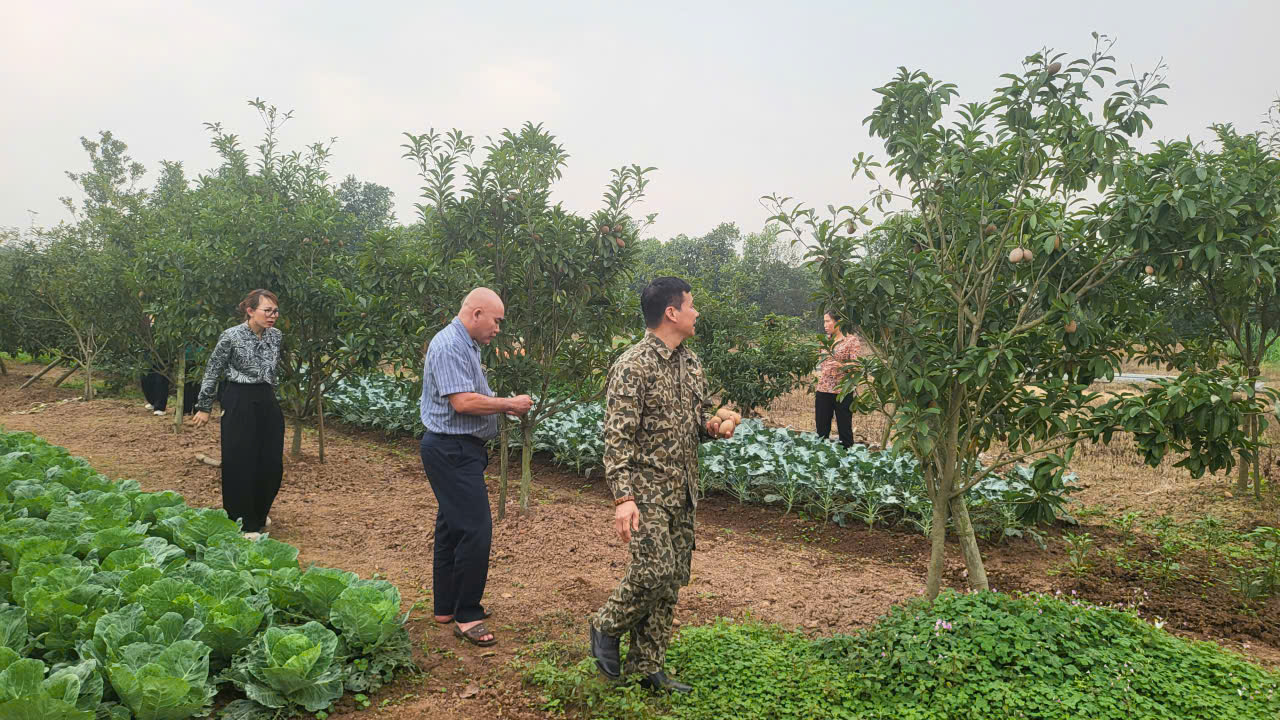 Hai giảng viên cùng các học viên tham quan HTX Nông nghiệp công nghệ cao Địa sinh thái VFARM