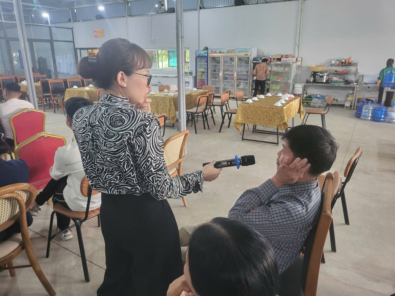 Buổi tập huấn đầu tiên kết thúc vào lúc 12h00, các học viên tham dự buổi ăn trưa và trò chuyện giao lưu tại phòng ăn bên cạnh lớp tập huấn.
